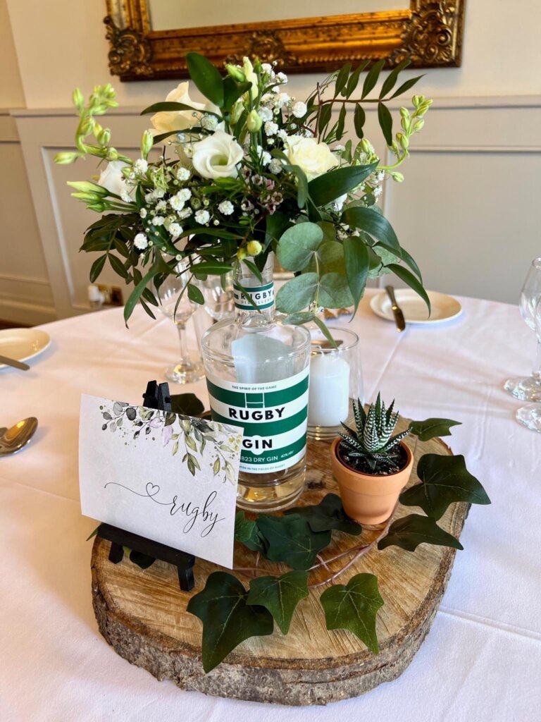 We were delighted to receive this beautiful photograph from one of our lovely customers who have recycled their Rugby Distillery 1823 Dry Gin as a fantastic wedding centrepiece. Here is what Rosalind said... "I thought you might be interested to see a picture...